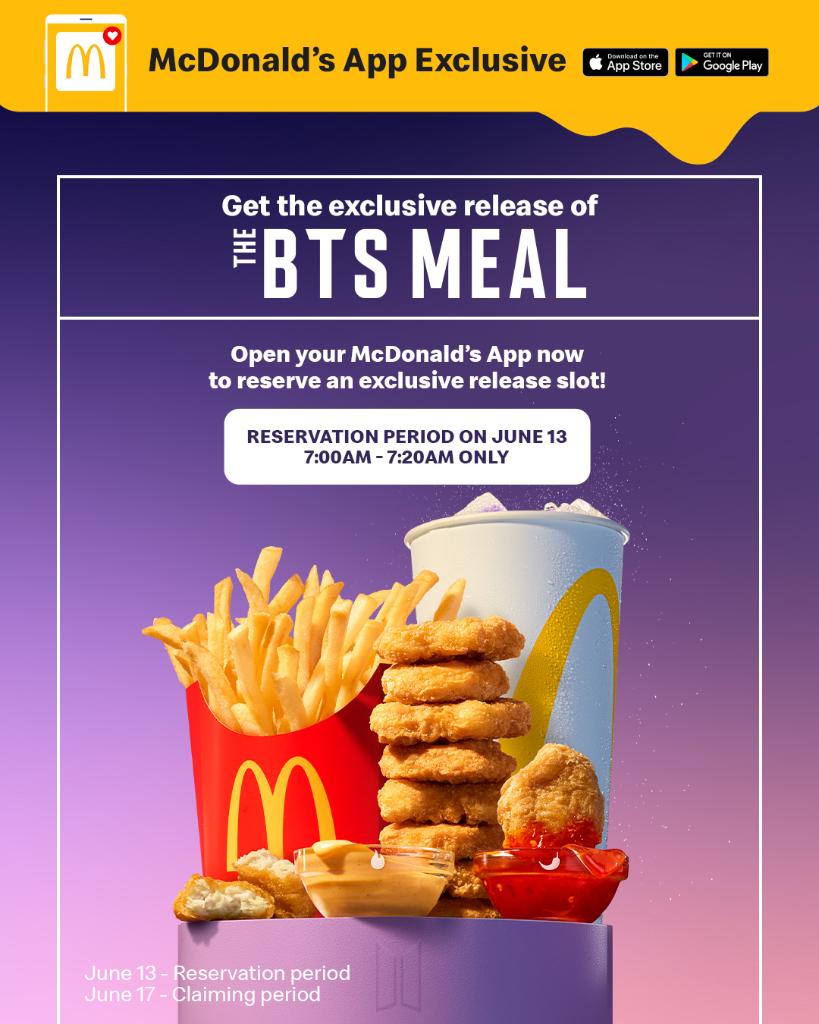To those BTS fans who couldnt reserve a slot the official McDo Philippines Twitter account will be posting another round this week. BTS is indeed taking over the Philippines. The BTS Meal McDonalds.